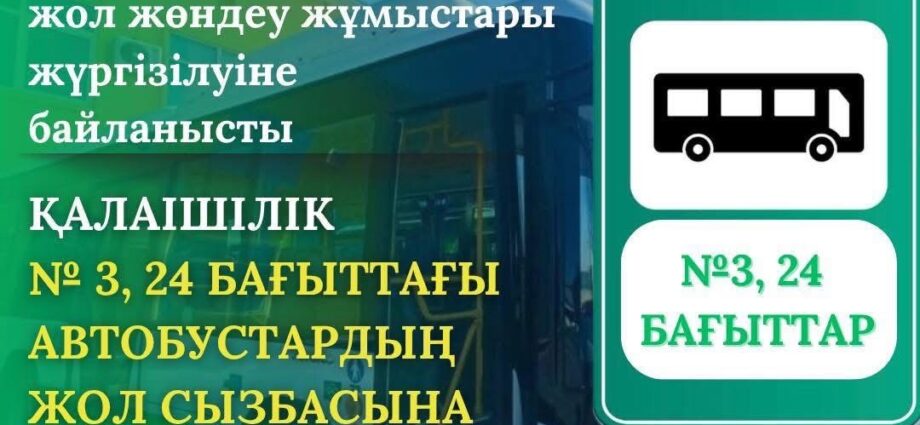 №3 бағыттағы автобус бұрынғы бағытына өзгеріс енгізіп, Қорқыт ата көшесі арқылы Кеңесары көшесіне түсіп, одан әрі С.Торайғыров көшесімен қозғалысын жалғастыратын болады.